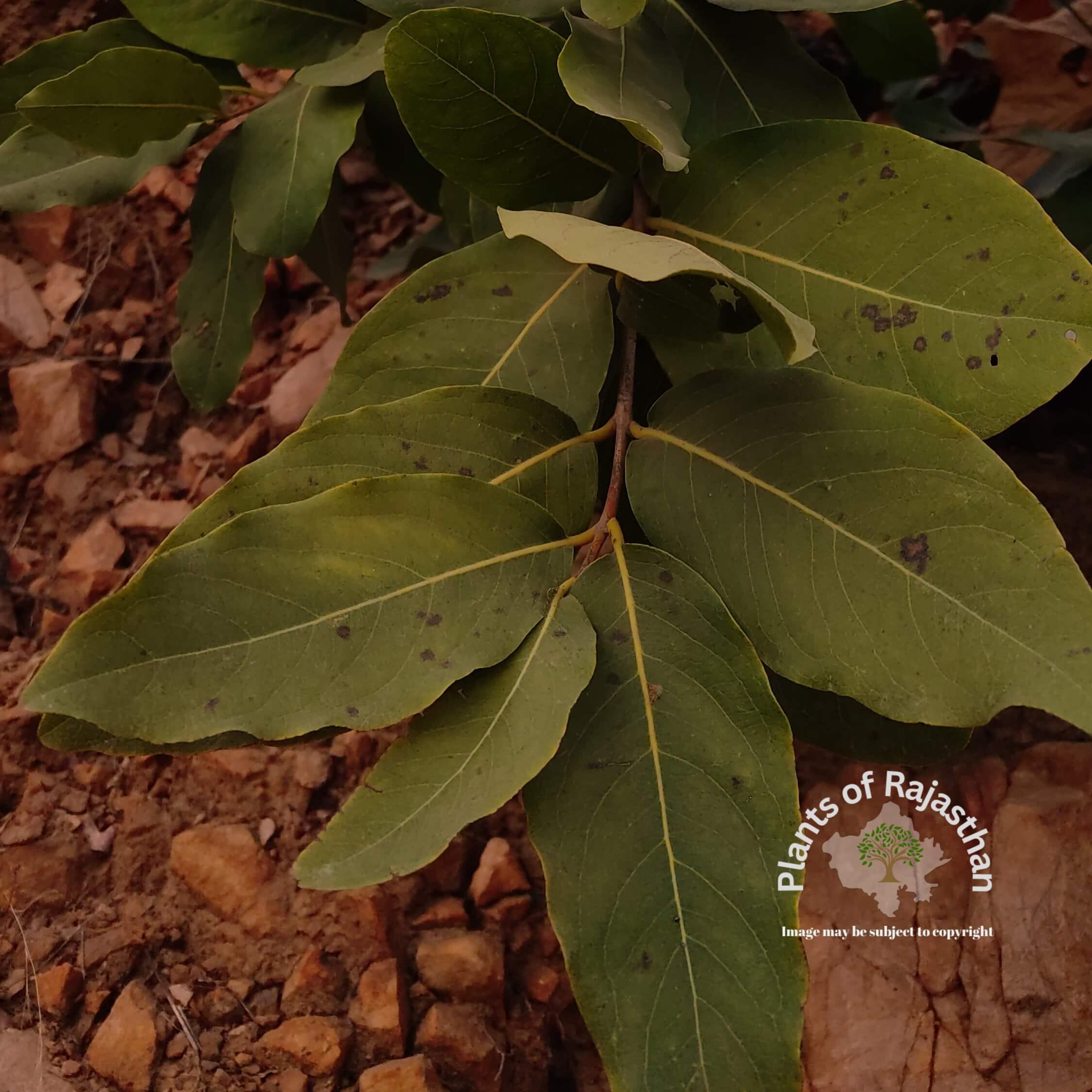 The tree is of a moderate size. It is normally found in a dry deciduous forest or evergreen depending on its habitat. It is the most widely distributed throughout India, covering the entire Indian peninsula. One of its distinguishing characteristics is the pelican-colored bark that peels in rectangular scales. Elliptic-oblong leaves can be opposing or alternating, leathery, and up to 32 cm long. When young, they are velvety on both sides, but as they mature, they become greenish and tough. The flowering and fruiting periods are April-May and March-April respectively -