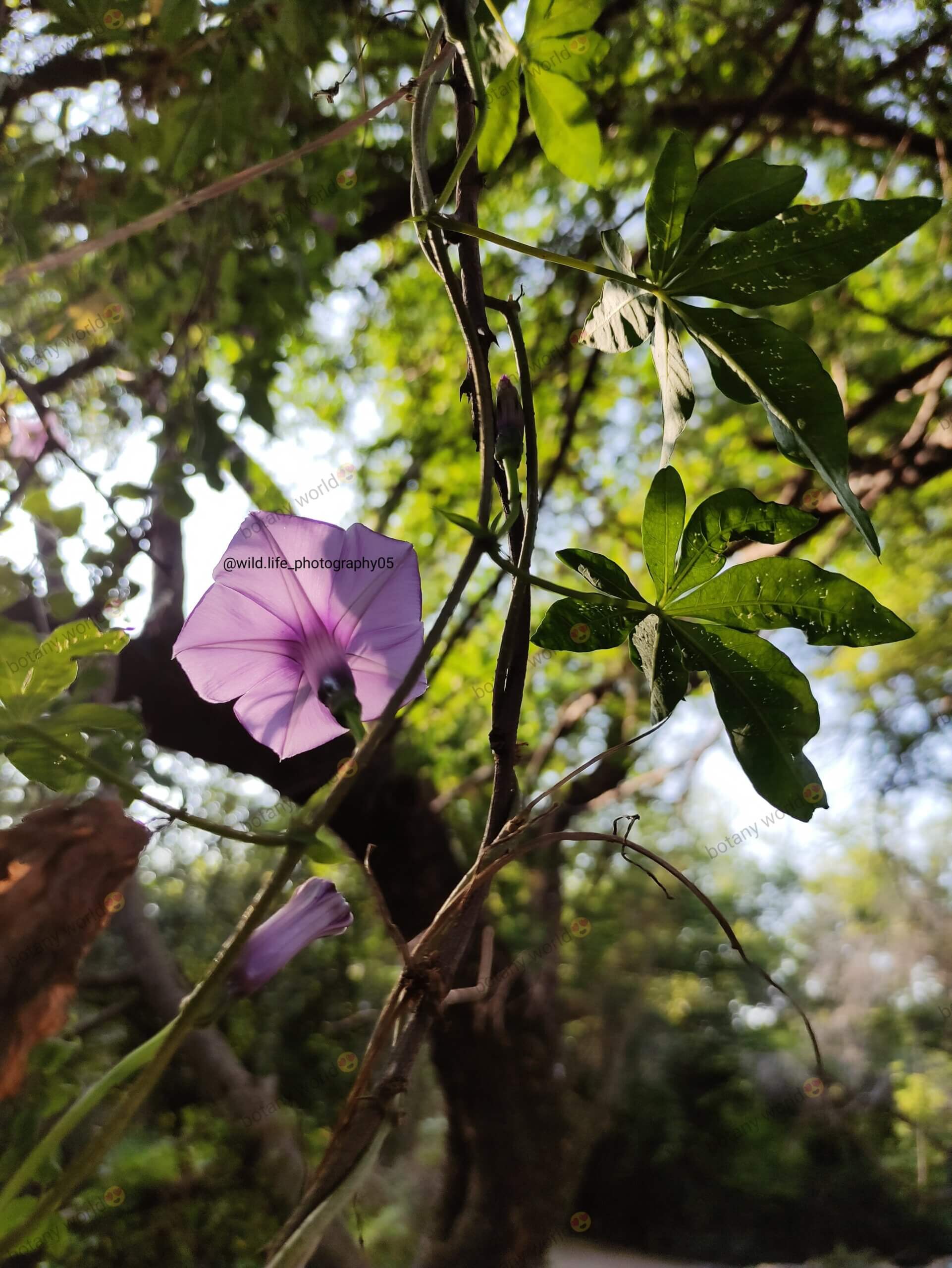 Ipomoea cairica wrapped around the stem of Tinospora cordifolia