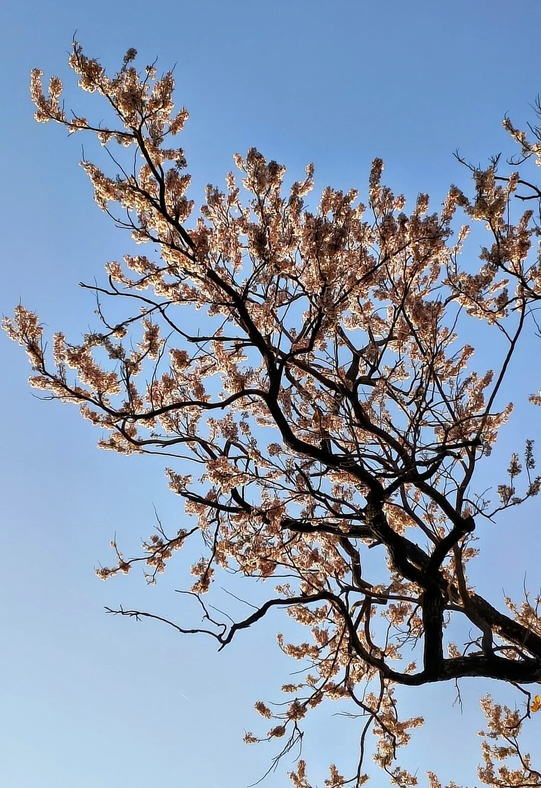 - It has pink flowers that bloom between February and May.